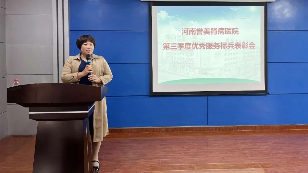为进一步提高医疗服务质量,构建和谐医患关系,激励广大员工积极工作,比学赶超,不断提升为人民健康服务的能力,10月25日下午,河南誉美肾病医院在学术报告厅召开了2023第三季度“优秀服务标兵”表彰会。