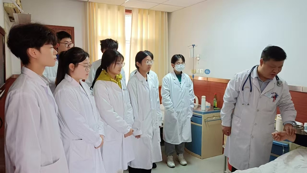 在分组环节中,同学们走进七个病区,与科室主任一同参与查房,近距离观察医患沟通、病情分析与诊疗过程。查房过程中,主任们不仅细致分析病情,更主动倾听患者的感受与需求,耐心解答患者和家属的疑问,在制定治疗方案时充分考虑患者的实际情况与个人意愿。这种真诚的沟通与关怀,让同学们亲眼见证了何为“发自内心地关心每一位患者”,也对“以患者为中心”的医疗服务有了真切而深刻的理解。