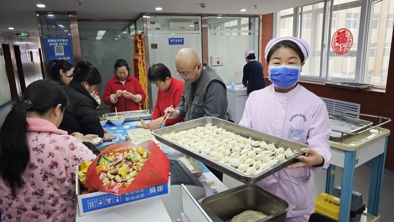 下午2时,医院各病区活动室早已布置一新,医护人员提前准备好了新鲜的馅料、面团。活动伊始,大家便自发分工,有的揉面、有的擀皮、有的包制,现场气氛热烈而温馨。